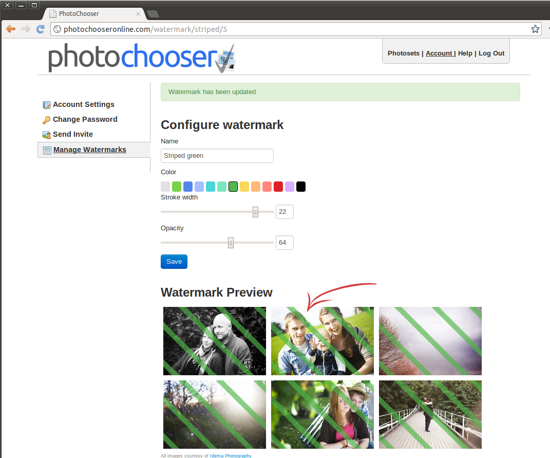 Your changes have now been saved and the watermark previews at the bottom have been updated. Just repeat the process